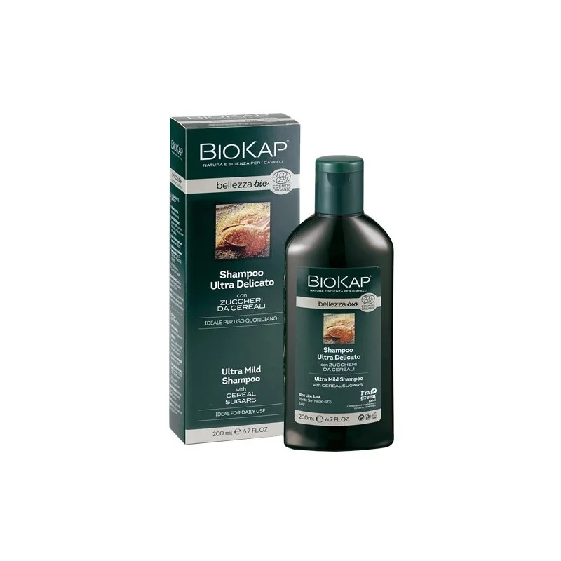 Lo Shampoo Ultra Delicato Biokap Bellezza bio è ideale per lavaggi frequenti e uso quotidiano. La sua formula contiene zuccheri da cereali che detergono delicatamente e mantengono i capelli idratati, soffici e docili al pettine. Grazie al fito-complesso da noci verdi protegge i capelli dagli agenti esterni e ne preserva il colore. Infine, la presenza di estratto di mandorle, assicura morbidezza e lucentezza ai capelli. Lo Shampoo Ultra Delicato è adatto a tutti i tipi di capelli, anche per i più piccoli: la sua formula delicata non brucia gli occhi.