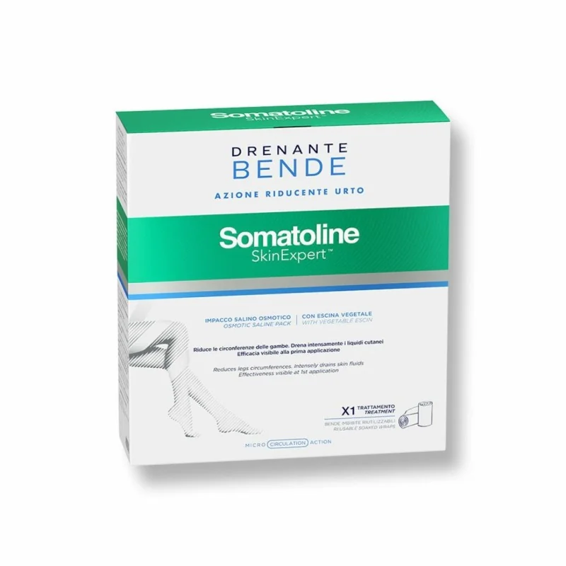 Somatoline SkinExpert Drenante Bende Snellenti è un trattamento osmotico per drenare intensamente i liquidi e favorire un'azione snellente già dal primo giorno.