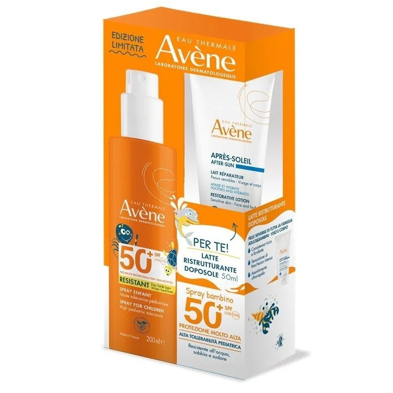 Avène Eau Thermale Avene Solare Spray Bambino Spf50+ 200 Ml + Ristrutturante Doposole 50 Ml