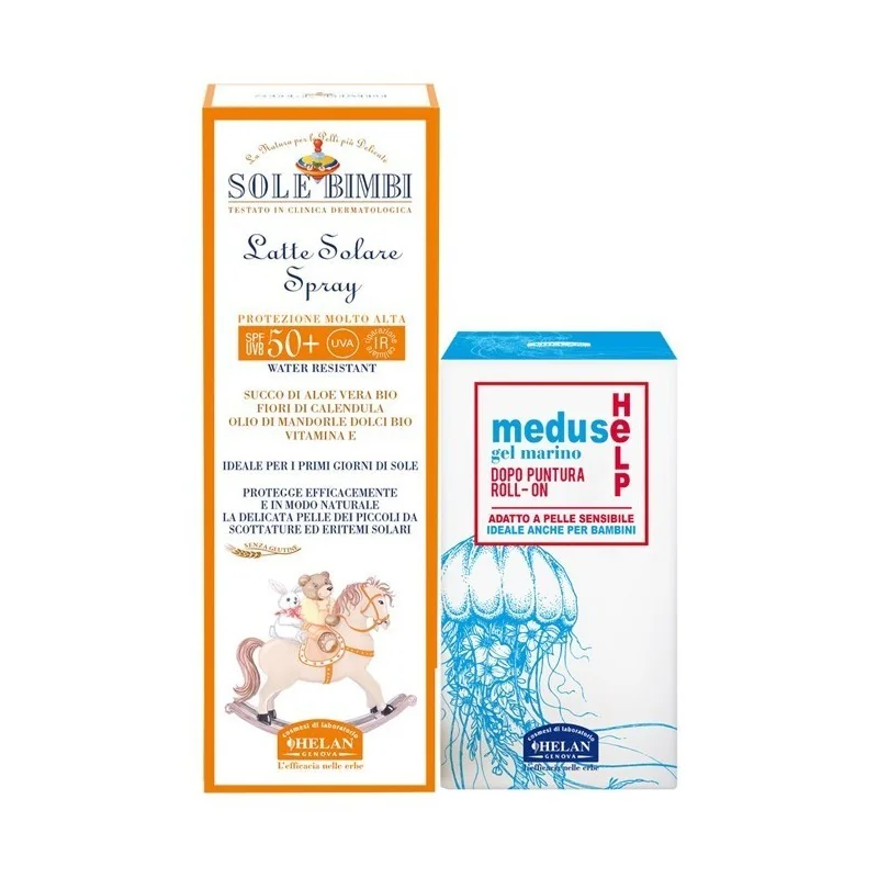Helan Sole Bimbi Latte Solare Spray Spf50+ 100 Ml + Meduse Help Gel Marino Dopo Puntura Roll On 25 Ml