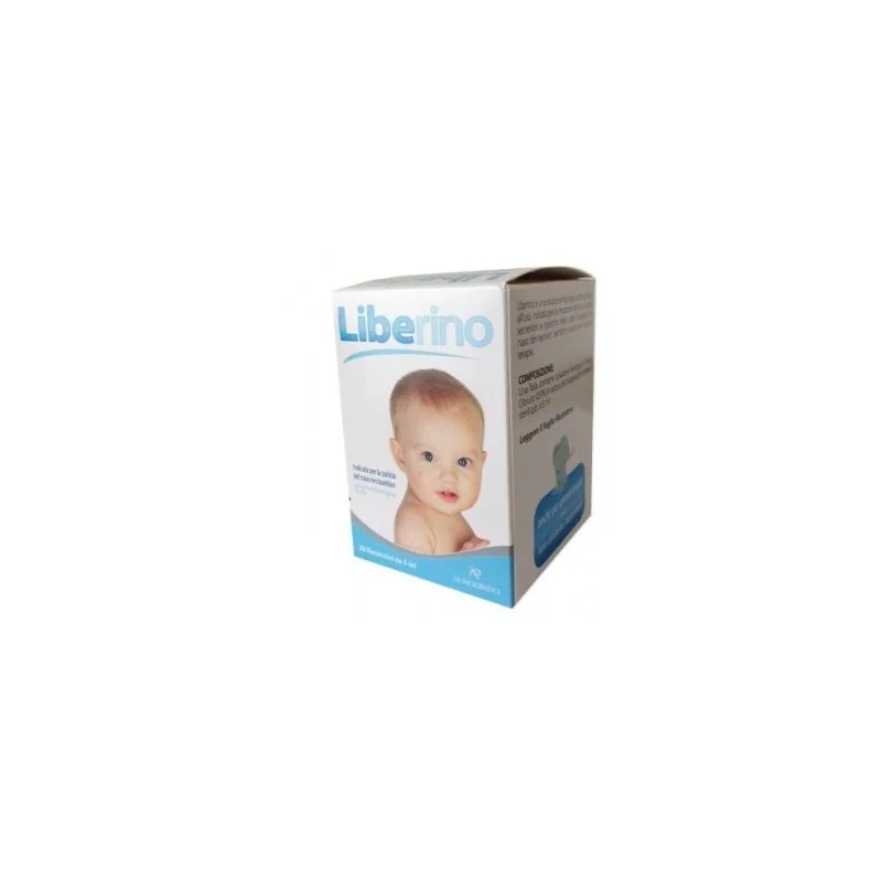 Soluzione fisiologica sterile, pronta all'uso, indicata per la rimozione del muco o delle secrezioni e ripristino dello stato fisiologico del naso dei neonati, bambini, adulti ed in aerosolterapia.Liberino libera il naso dei neonati del muco che spesso lo ostruisce e facilita pertanto la poppata ed il sonno dei lattanti. È indicato per la rimozione del muco o delle secrezioni e ripristino dello stato fisiologico del naso dei bambini non in grado di pulirselo correttamente.