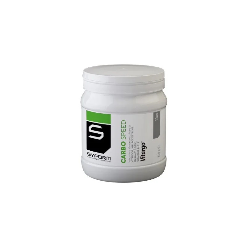Integratore per sportivi a base di carboidrati a rendimento energetico lento e prolungato nel tempo, ideale nelle attività di endurance, fondo, mezzo fondo. Contiene maltodestrine tradizionali D.E.19, a bassa osmolarità, altamente digeribili ed assimilabili, isomaltulosio (Palatinose), un innovativo disaccaride (glucosio-fruttosio) con basso indice glicemico, pari a 32, a lento rilascio energetico, altamente digeribile e leggero per stomaco e intestino. Il prodotto è altresì ricco di tutte le vitamine indispensabili alla produzione energetica. Grazie alle proprietà degli ingredienti attivi Carbo Speed sciolto in acqua produce una bevanda ipotonica, che fornisce una costante disponibilità di energia. L’assenza di aroma è un plus molto utile nelle discipline di endurance, poiché l’aroma può disturbare l’apparato gastrointestinale durante la prestazione.