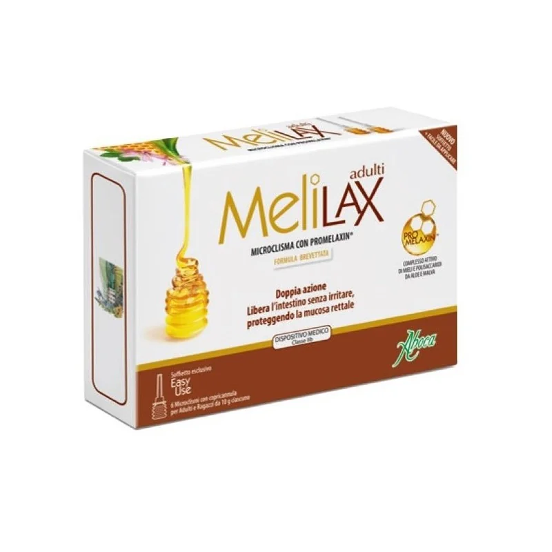 Melilax Microclisma è a base di miele, che unisce un’equilibrata azione evacuante ad un’azione protettiva e lenitiva della mucosa rettale, utile per contrastare i fastidi, l’irritazione e l’infiammazione, presenti in caso di stipsi.