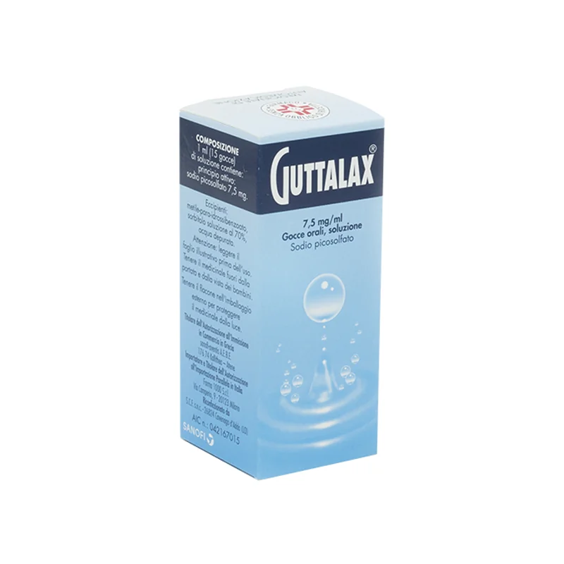 Sono consigliati i seguenti dosaggi: Adulti Negli adulti si consiglia di iniziare con 7-8 gocce in acqua al giorno e di diminuire se l'effetto è eccessivo o di aumentare se l’effetto lassativo non è raggiunto. Nei casi di stitichezza ostinata si può arrivare fino a 15-20 gocce in acqua. Popolazione pediatrica Nei bambini (al di sopra dei 3 anni): 2-3 gocce in acqua al giorno. Non superare le dosi consigliate. È consigliabile usare inizialmente le dosi minime previste. La dose corretta è quella minima sufficiente a produrre una facile evacuazione di feci molli. Quando necessario, la dose può essere poi aumentata, ma senza mai superare quella massima indicata. Guttalax dovrebbe essere assunto preferibilmente alla sera per provocare l’evacuazione al mattino seguente. Ingerire insieme ad una adeguata quantità di acqua. Una dieta ricca di liquidi favorisce l’effetto del medicinale. I lassativi devono essere usati il meno frequentemente possibile e per non più di sette giorni. L’uso per periodi di tempo maggiori richiede la prescrizione del medico dopo adeguata valutazione del singolo caso.