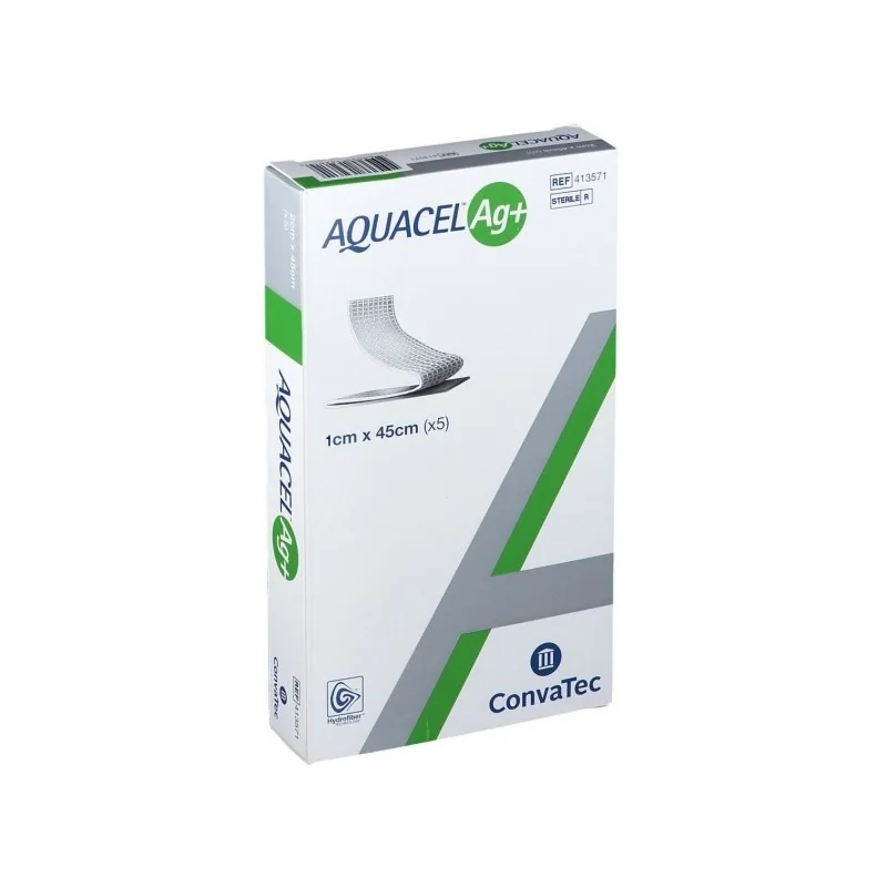 Dettagli Convatec Medicazione In Hydrofiber E Ioni Argento Intessuta In Lyocell Aquacel Ag + Extra 1x45cm 5 Pezzi
