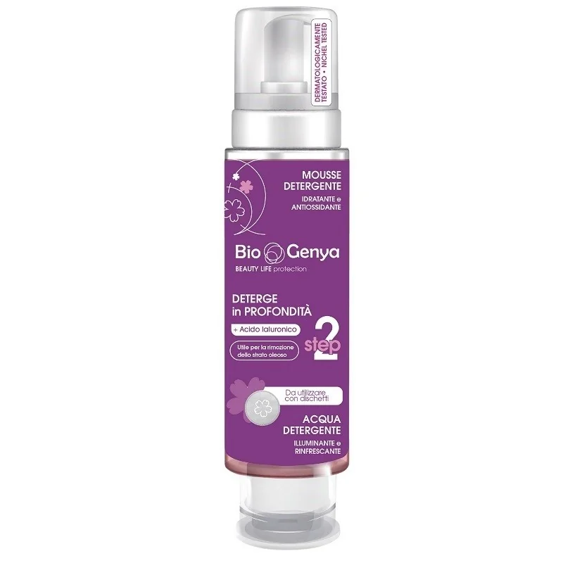 Innovativo detergente viso 2 in 1, perfetto da utilizzare come seconda fase nella doppia detersione, unisce il potere di una soffice mousse ad un'acqua detergente rinfrescante. La formula esclusiva, arricchita con acido ialuronico, deterge delicatamente idratando. può essere utilizzata con la pratica pump per trasformare il detergente in una nuvola di mousse, o applicabile con un dischetto, grazie al pratico erogatore. Utile per detergere e per rinfrescare la pelle. Perfetto per mantenere la pelle luminosa e rivitalizzata ogni giorno.