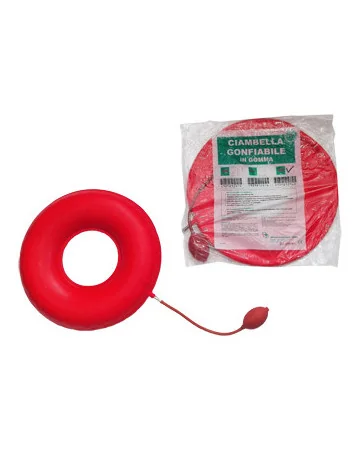 Il presente dispositivo ha lo scopo di alleviare alcuni sintomi e/o disfunzioni generate da malattie sul corpo umano. Il dispositivo deve essere gonfiato con aria prima dell'uso e al proprio interno non possono essere introdotti liquidi o altre sostanze. Cuscino gonfiabile con forma ad anello per dare conforto e sostegno a qualsiasi superficie di appoggio; utile soprattutto dopo un intervento chirurgico o in determinate condizioni mediche come le emorroidi e altre simili. Costruito in gomma resistente a lunga durata.