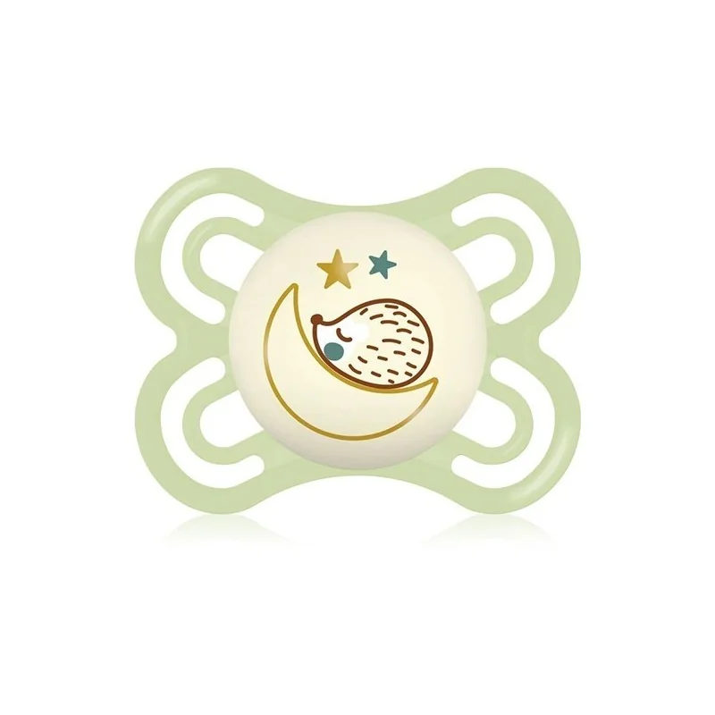 Ciuccio che si illumina al buio, facile da trovare grazie al bottone luminescente. Il ciuccio MAM Perfect Night per favorire uno sviluppo sano del cavo orale ed è facile da trovare al buio.