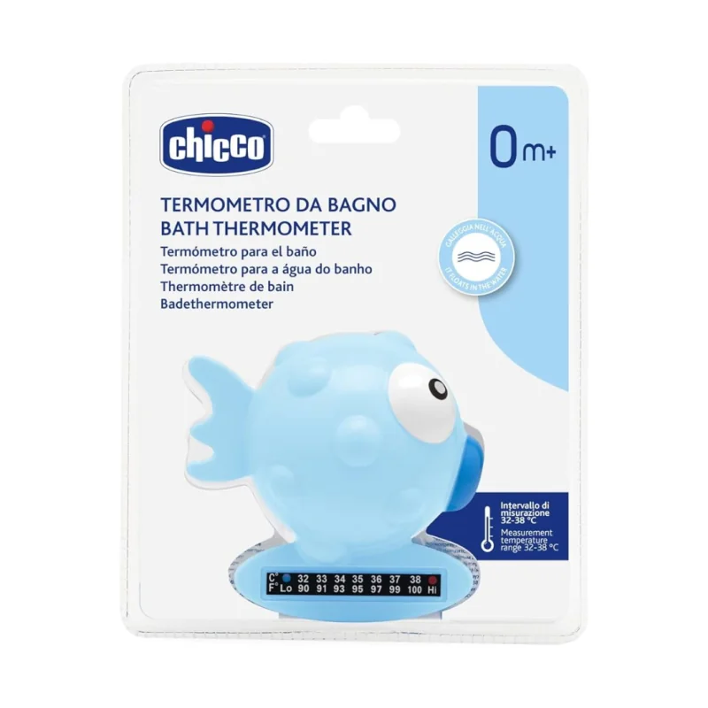 Chicco termometro da bagno Pesce Azzurro, con un design simpatico a forma di pesce, è un termometro galleggiante progettato per misurare la temperatura dell’acqua del bagnetto in modo preciso.