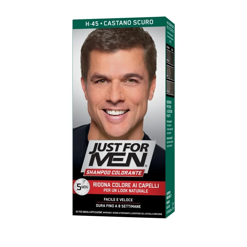 Dettagli Combe Italia Just For Men Shampoo Colorante H45 Castano Scuro Attivatore Chiaro 38,5 Ml + Base Colore 27,5 Ml