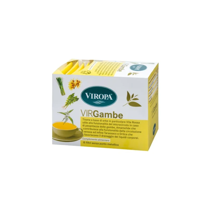Tisana a base di erbe in particolare vite rossa, utile alla funzionalità del microcircolo in caso di pesantezza delle gambe, amamelide che contribuisce alla funzionalità della circolazione venosa ed infine tarassaco e ortica che favoriscono il drenaggio dei liquidi corporei.