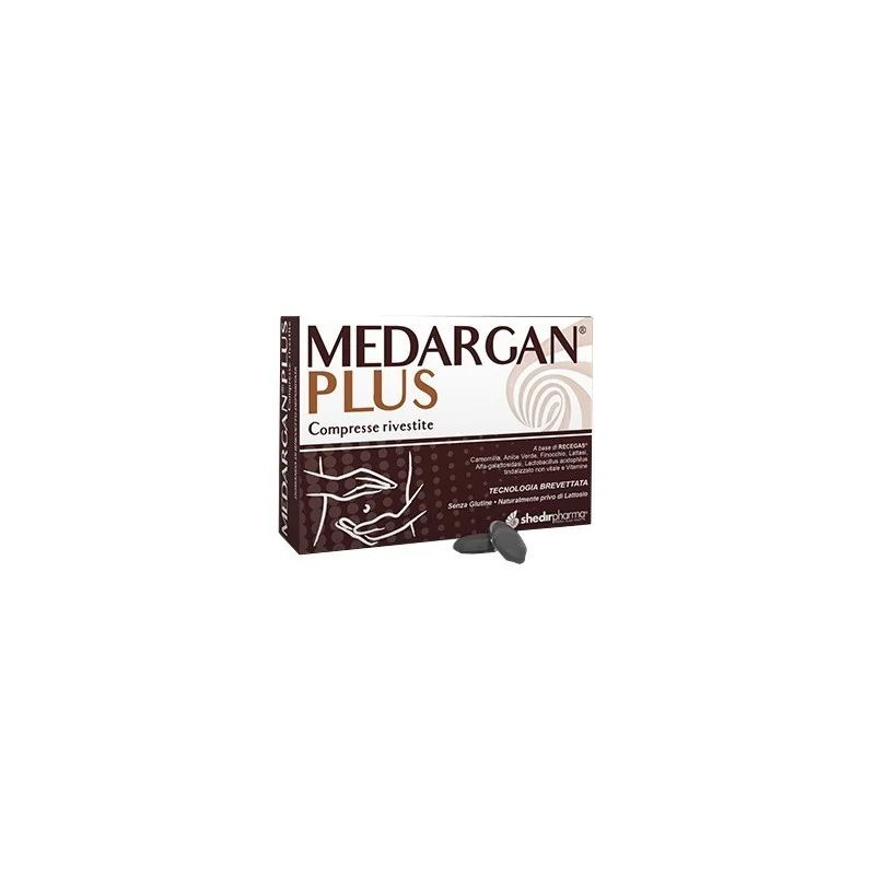 Medargan Plus è un complemento alimentare a base di Recegas (Carbone Vegetale Attivo, Carvi, Papaina), Camomilla, Anice Verde, Finocchio, Lattasi, Alfa-galattosidasi, Lactobacillus acidophilus tindalizzato non vitale e Vitamine, che contribuiscono alla regolare motilità gastrointestinale ed eliminazione dei gas e alla funzione digestiva.