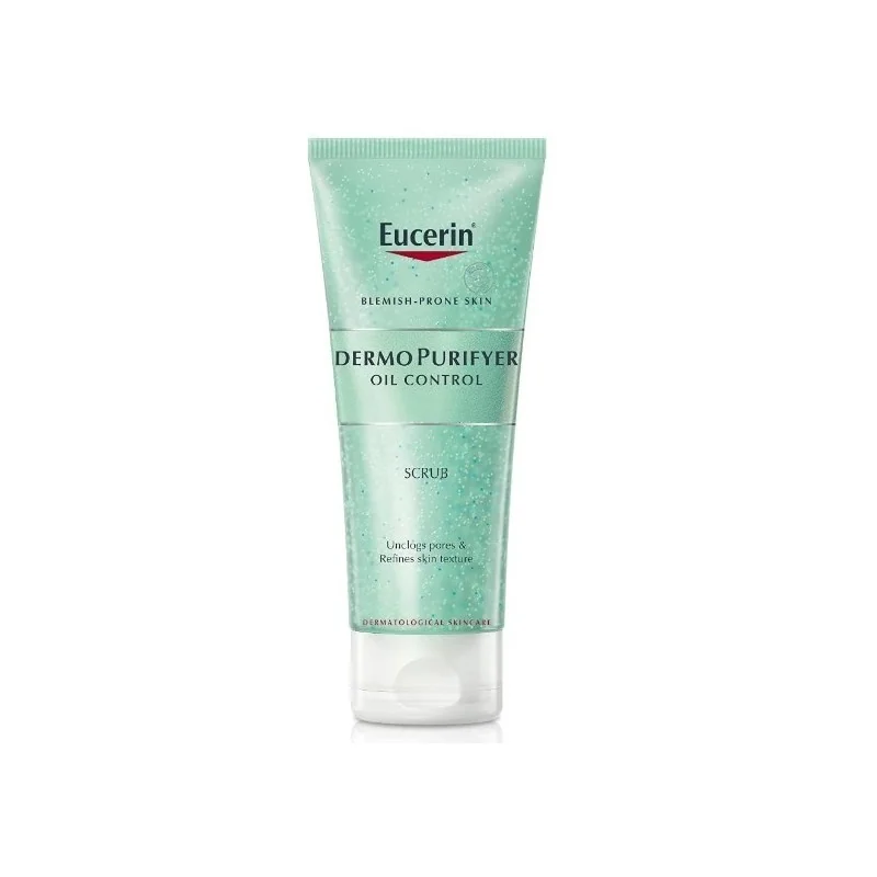 Eucerin Dermopurifyer oil control scrub è un trattamento esfoliante per eliminare cellule morte e ridurre le impurità.