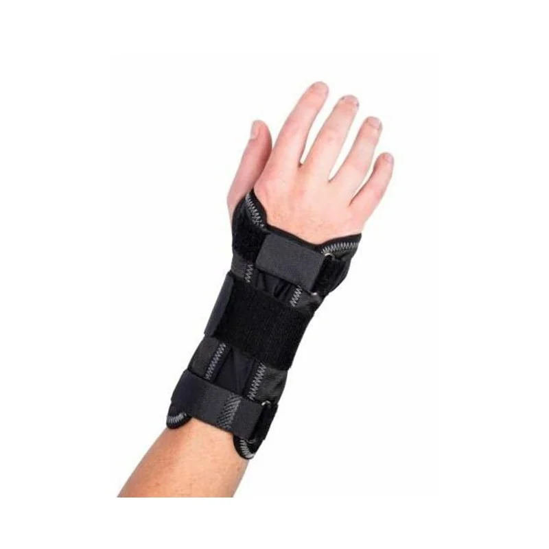Tutore per polso con stecca in alluminio preformata e regolabile per la stabilizzazione e la protezione dell'articolazione del polso.