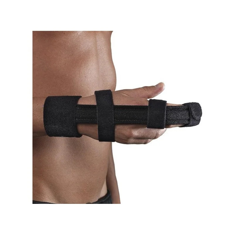 Aprire le quattro cinghie. Posizionare sulla stecca il dito lesionato insieme al dito vicino più lungo. Chiudere la cinghia all’estremità delle dita e quella del polso. Stringere le cinghie intermedie, una intorno alle dita e l’altra intorno alla mano. Queste due cinghie si possono riposizionare lungo le chiusure a strappo.