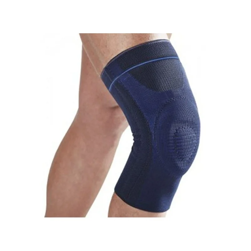 Steccaggio laterale a spirale per la stabilizzazione dell’articolazione, fornisce una compressione di Classe 3 (francese), un effetto propriocettivo e un riallineamento della rotula. Tessuto compressivo realizzato con 3D Motion Technology.