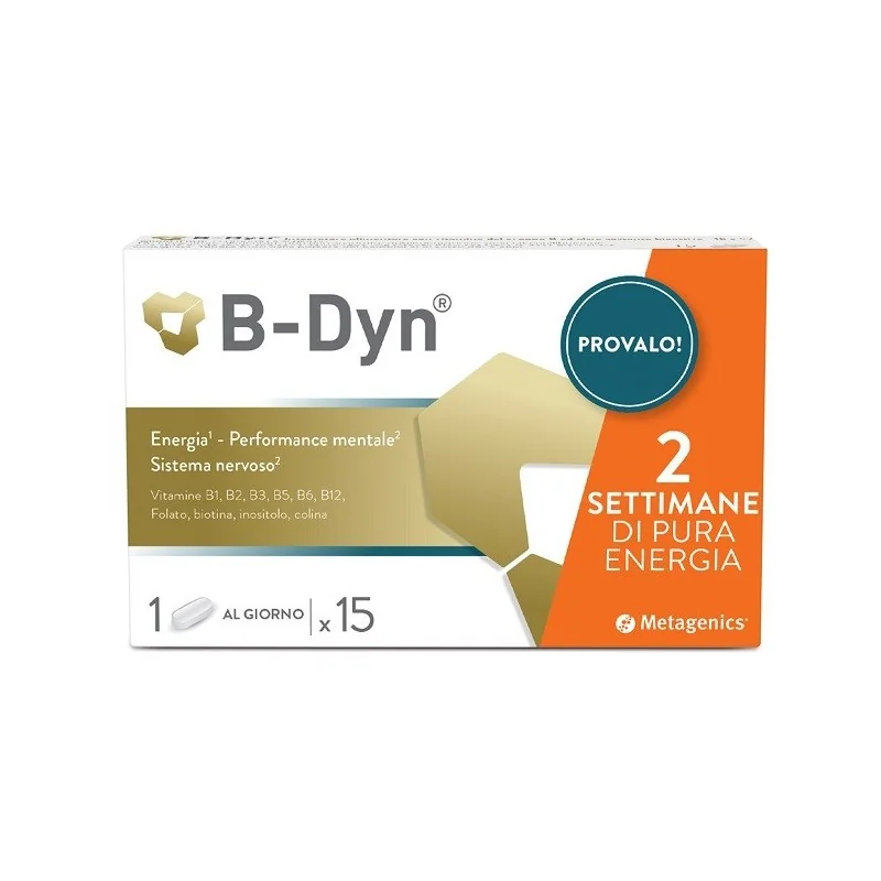 B-Dyn, grazie alla sua composizione, contribuisce al fisiologico funzionamento del sistema nervoso ed alla normale funzione psicologica2 (vitamine B1, B3, B6, B12, biotina). Inoltre, contribuisce alla riduzione di stanchezza ed affaticamento1 (vitamine B2, B3, B5, B12) ed al normale metabolismo dell'omocisteina (folato, vitamine B6, B12, colina).